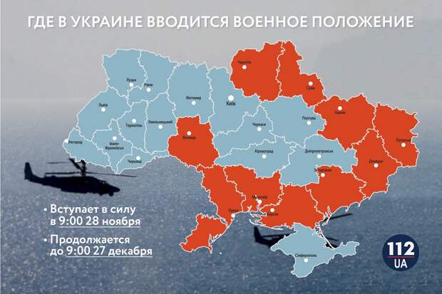 26 ноября Верховная Рада одобрила указ Порошенко о введении военного положения в ряде областей Украины.
